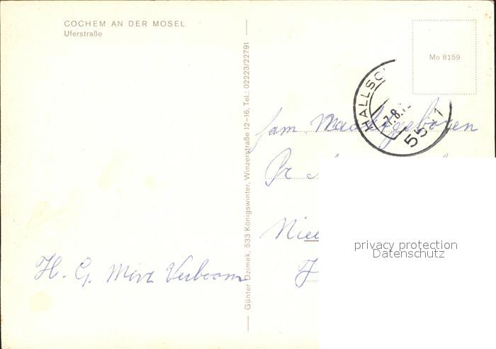 72421034 alte Postkarte Cochem Mosel Uferstrasse Schlossblick postalisch gelaufen Erhaltung siehe scans KatCode: 11110007135020