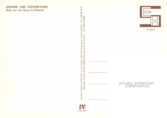 72768958 Cochem Mosel und Cochem Cond Panorama Blick von der Burg ins Moseltal postalisch nicht gelaufen Erhaltung siehe scans [FriedD77] KatCode: 11110007135020