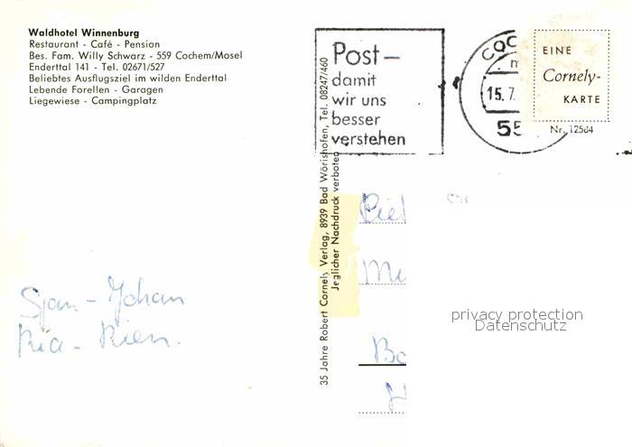 72855875 alte Postkarte Cochem Mosel Waldhotel Winnenburg postalisch gelaufen Erhaltung siehe scans [FriedD77] KatCode: 11110007135020