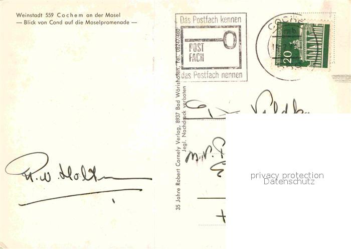 72909351 alte Postkarte Cochem Mosel Weinstadt Blick von Cond auf Moselpromenade postalisch gelaufen Erhaltung siehe scans [LiesaD40] KatCode: 11110007135020
