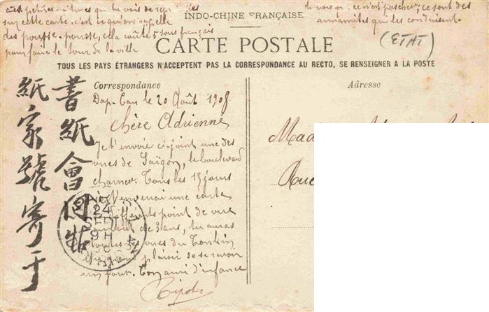 73973842 old postcard Cochinchine Vietnam Boulevard Charner postalisch gelaufen Erhaltung siehe scans [WerneD78] KatCode: 12280