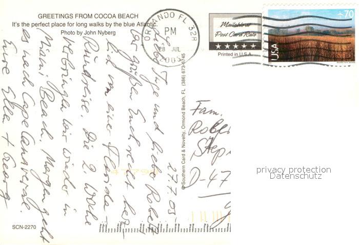 73707229 old postcard Cocoa Beach Aerial view postalisch gelaufen Erhaltung siehe scans [WerneD78] KatCode: 14140110000000