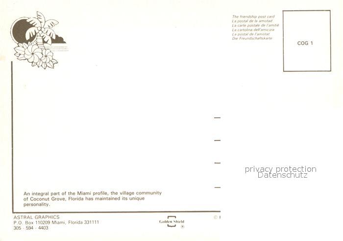 73707224 Coconut Grove Florida Fliegeraufnahme postalisch nicht gelaufen Erhaltung siehe scans [WerneD78] KatCode: 14140