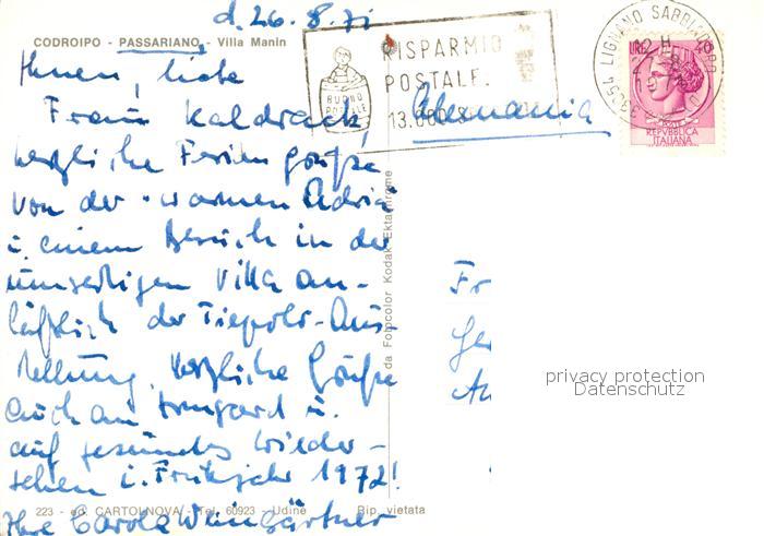 old postcard Codroipo Passariano Villa Manin postalisch gelaufen Erhaltung siehe scans [WerneD78]