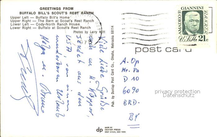 72504631 old postcard Cody Nebraska Buffalo Bills Scouts Rest Ranch postalisch gelaufen Erhaltung siehe scans KatCode: 14140290000000