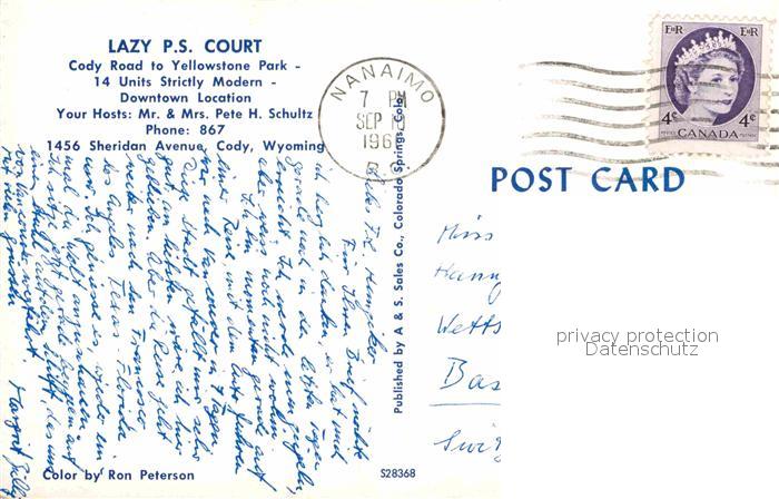 72640576 old postcard Cody Wyoming Lazy Court postalisch gelaufen Erhaltung siehe scans [KathaD79] KatCode: 14140530000000