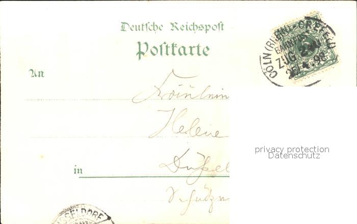 31704801 alte Postkarte Coeln Rhein Bahnpost Crefeld Koengl. Webeschule Bismarck-Denkmal Staendehaus Hochstrasse Krieger-Denkmal postalisch gelaufen Erhaltung siehe scans KatCode: 11110005315000