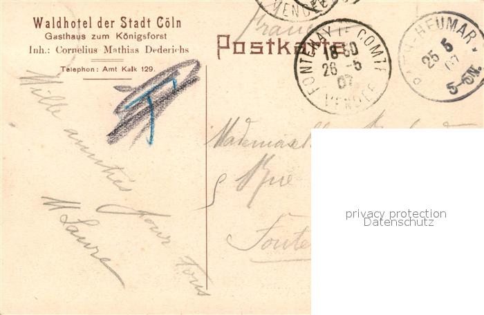 33526636 alte Postkarte Coeln Rhein Waldhotel der Stadt Coeln Koenigsforst postalisch gelaufen Erhaltung siehe scans [WerneD78] KatCode: 11110005315000