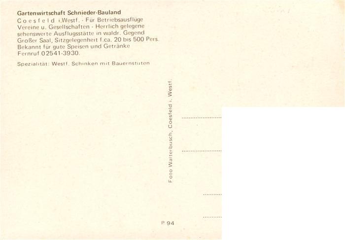 73898159 Coesfeld Altdeutsche Gaststaette Schnieder Bauland postalisch nicht gelaufen Erhaltung siehe scans [WerneD78] KatCode: 11110005558012