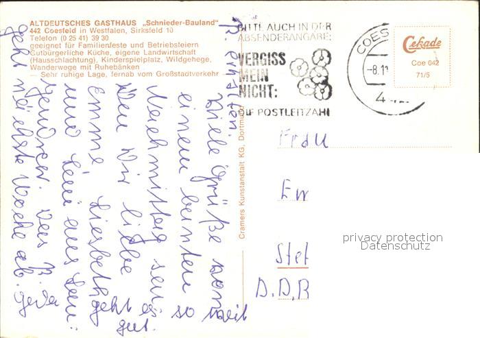 72136874 alte Postkarte Coesfeld Altdeutsches Gasthaus Schnieder-Bauland postalisch gelaufen Erhaltung siehe scans KatCode: 11110005558012
