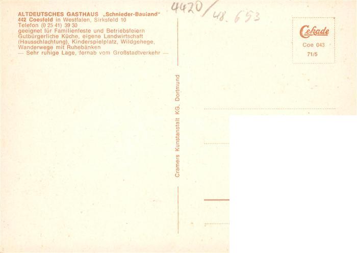 73894141 Coesfeld Altdeutsches Gasthaus Schnieder Bauland Gastraeume Tierpark postalisch nicht gelaufen Erhaltung siehe scans [WerneD78] KatCode: 11110005558012