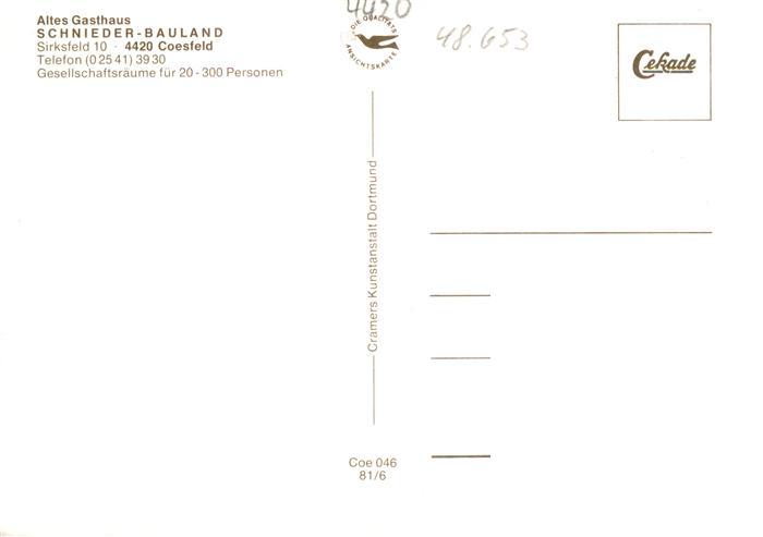 73894140 Coesfeld Altes Gasthaus Schnieder Bauland Gastraeume Tierpark postalisch nicht gelaufen Erhaltung siehe scans [WerneD78] KatCode: 11110005558012