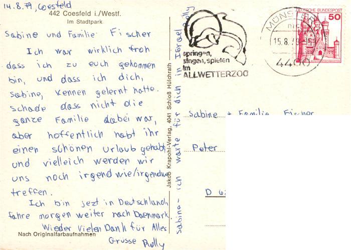 73933140 alte Postkarte Coesfeld Im Stadtpark postalisch gelaufen Erhaltung siehe scans [FriedD77] KatCode: 11110005558012