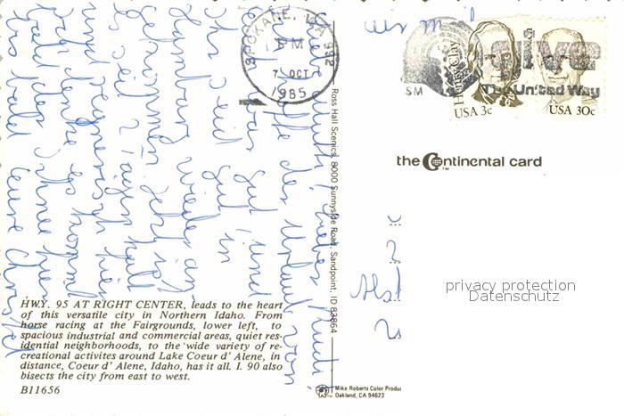 72715538 old postcard Coeur d Alene Aerial view postalisch gelaufen Erhaltung siehe scans [FriedD77] KatCode: 14140140000000