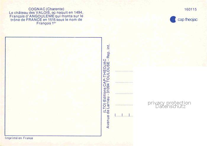 12700063 Cognac Charente Chateau des Valois Francois d Angouleme postalisch nicht gelaufen Erhaltung siehe scans [FriedD77] KatCode: 11170016216102