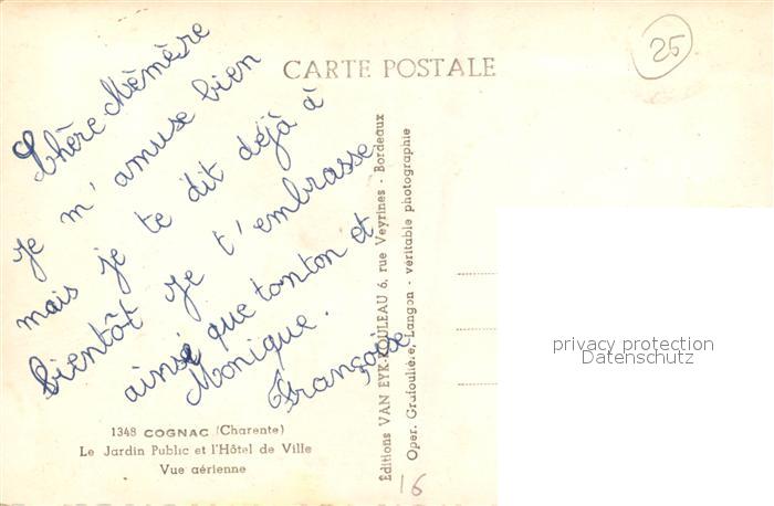 13494389 Cognac Charente Jardin Public Hotel de Ville vue aérienne postalisch nicht gelaufen Erhaltung siehe scans [FriedD77] KatCode: 11170016216102