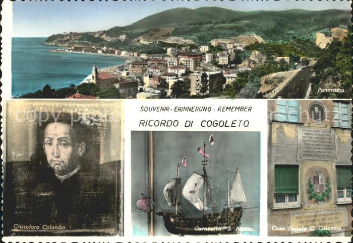 Cogoleto Liguria Panorama Cristoforo Colombo Caravella Santa Maria Casa Natale C Colombo postalisch nicht gelaufen Erhaltung siehe scans