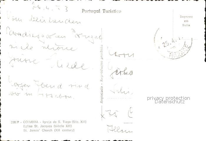 old postcard Coimbra Igreja di San Tiago postalisch gelaufen Erhaltung siehe scans