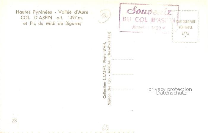 13483127 Col d Aspin et Pic du Midi de Bigorre Vallèe d Aure postalisch nicht gelaufen Erhaltung siehe scans [FriedD77] KatCode: 11170065265123