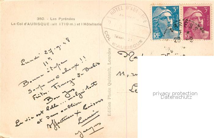 13575437 carte postale Col d Aubisque et Hotellerie postalisch gelaufen Erhaltung siehe scans [WerneD78] KatCode: 11170064264110