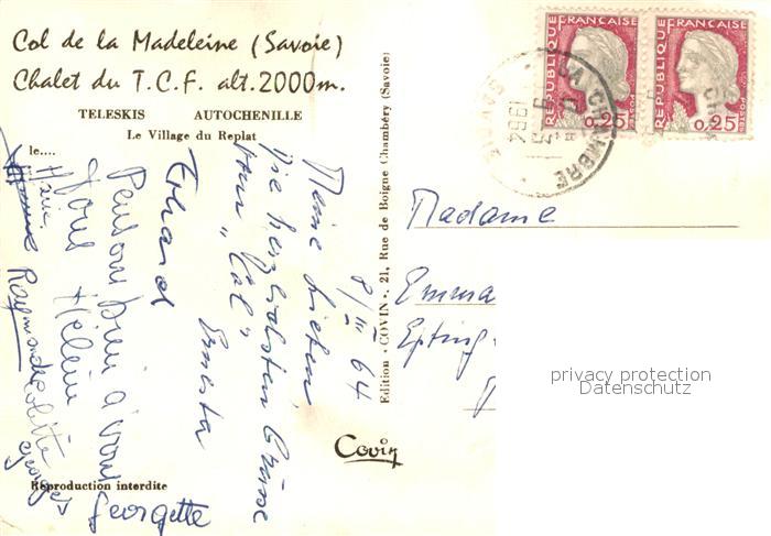 13163884 carte postale Col de la Madeleine Teleskis Autochenille Le Village du Replat postalisch gelaufen Erhaltung siehe scans [WerneD78] KatCode: 11170073373067