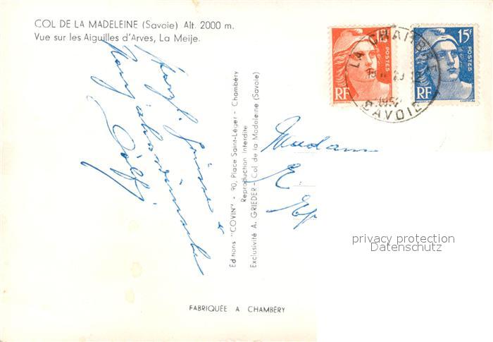 13297965 carte postale Col de la Madeleine Vue sur les Aiguilles d’Arves La Meije postalisch gelaufen Erhaltung siehe scans [WerneD78] KatCode: 11170073373067