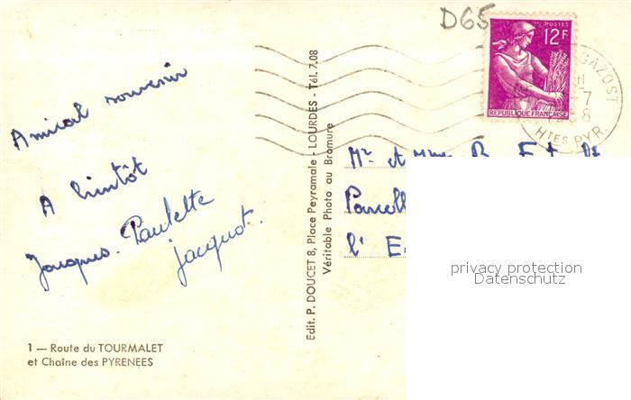 13585017 Col du Tourmalet Route du Tourmalet et Chaîne des Pyrénées postalisch gelaufen Erhaltung siehe scans [FriedD77] carte postale Frie Katcode 11170065365440