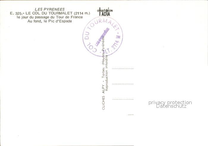 12494575 Col du Tourmalet Tour de France postalisch nicht gelaufen Erhaltung siehe scans KatCode: 11170065365440