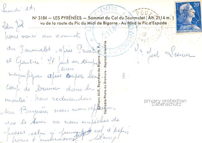 13593726 Col du Tourmalet Vu de la route du Pic du Midi de Bigorre Au fond le Pic d Espade postalisch gelaufen Erhaltung siehe scans [WerneD78] carte postale Wern Katcode 11170065365440