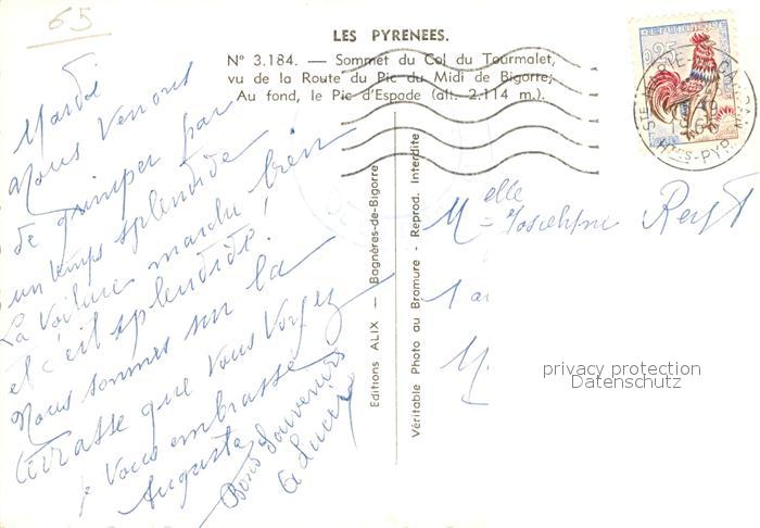 13593911 Col du Tourmalet vu de la Route du Pic du Midi de Bigorre Au fond le Pic d Espade postalisch gelaufen Erhaltung siehe scans [WerneD78] carte postale Wern Katcode 11170065365440