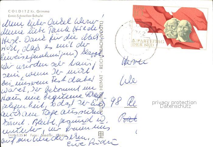 71977284 alte Postkarte Colditz Ernst Schneller Schule postalisch gelaufen Erhaltung siehe scans KatCode: 11110014383070