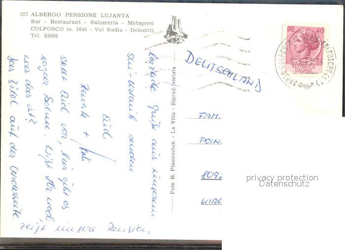 old postcard Colfosco Albergo Pensione Lujanta postalisch gelaufen Erhaltung siehe scans