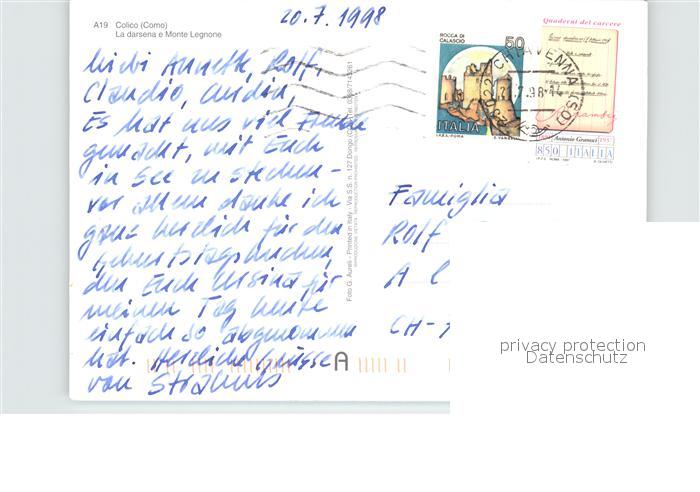 old postcard Colico Como La darsena e Monte Legnone postalisch gelaufen Erhaltung siehe scans [FriedD77]