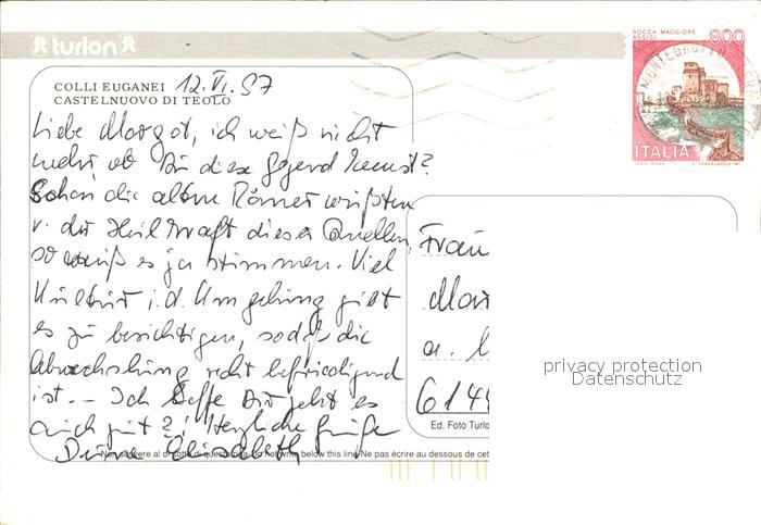 old postcard Colli Euganei Castelnuovo di Teolo postalisch gelaufen Erhaltung siehe scans