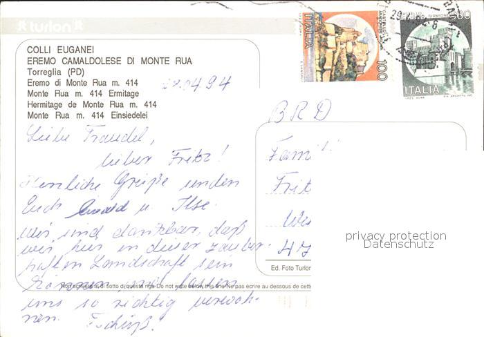 old postcard Colli Euganei Monte Rua Luftbild postalisch gelaufen Erhaltung siehe scans