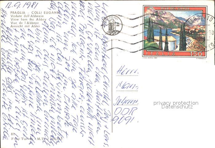 old postcard Colli Euganei Praglia Abbazia postalisch gelaufen Erhaltung siehe scans