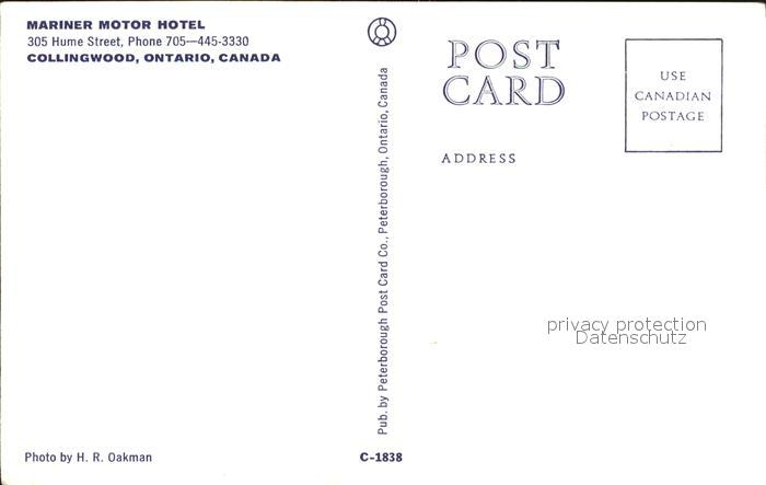 Collingwood Canada Mariner Motor Hotel postalisch nicht gelaufen Erhaltung siehe scans