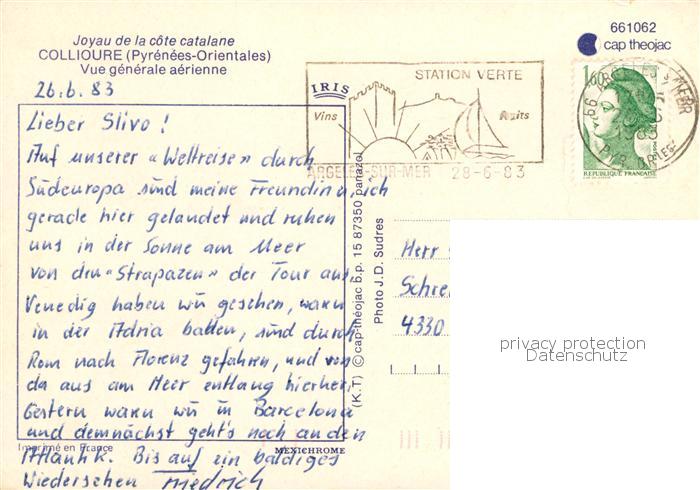 13836250 Collioure 66 Pyrenees-Orientales Vue generale aerienne postalisch gelaufen Erhaltung siehe scans [WerneD78] carte postale Wern Katcode 11170066166053