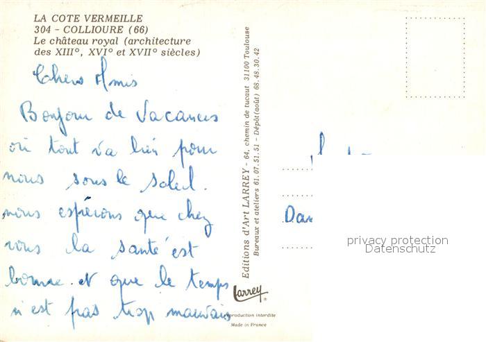 13525604 Collioure Chateau royal postalisch nicht gelaufen Erhaltung siehe scans [FriedD77] KatCode: 11170066166053