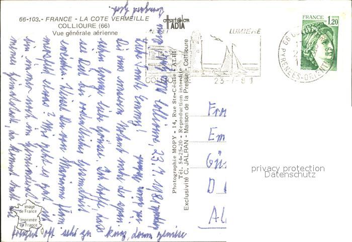 12489460 carte postale Collioure Fliegeraufnahme postalisch gelaufen Erhaltung siehe scans KatCode: 11170066166053