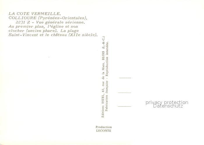 13152185 Collioure Fliegeraufnahme Strand Kirche Hafen postalisch nicht gelaufen Erhaltung siehe scans [KathaD81] KatCode: 11170066166053