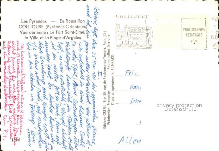 11916674 carte postale Collioure Fort Saint Elme Ville Plage d Argeles vue aerienne postalisch gelaufen Erhaltung siehe scans KatCode: 11170066166053