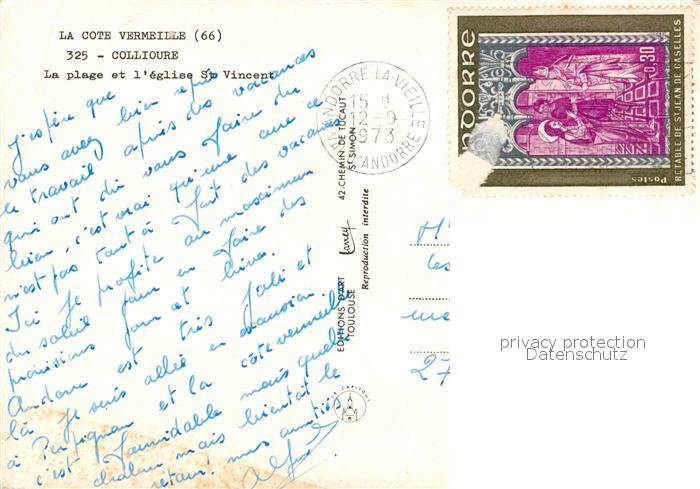 13522000 carte postale Collioure La plage Eglise Saint Vincent postalisch gelaufen Erhaltung siehe scans [FriedD77] KatCode: 11170066166053