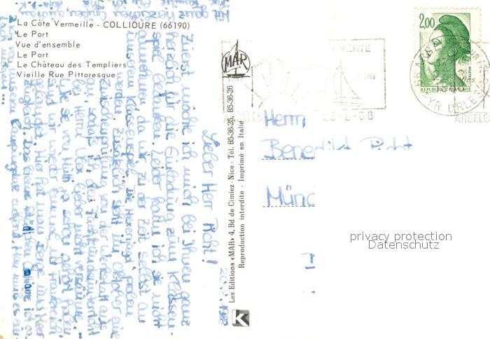 13258416 carte postale Collioure Le Port Vue d’ensemble Chateau des Templiers Vieille Rue Pittoresque postalisch gelaufen Erhaltung siehe scans [WerneD78] KatCode: 11170066166053