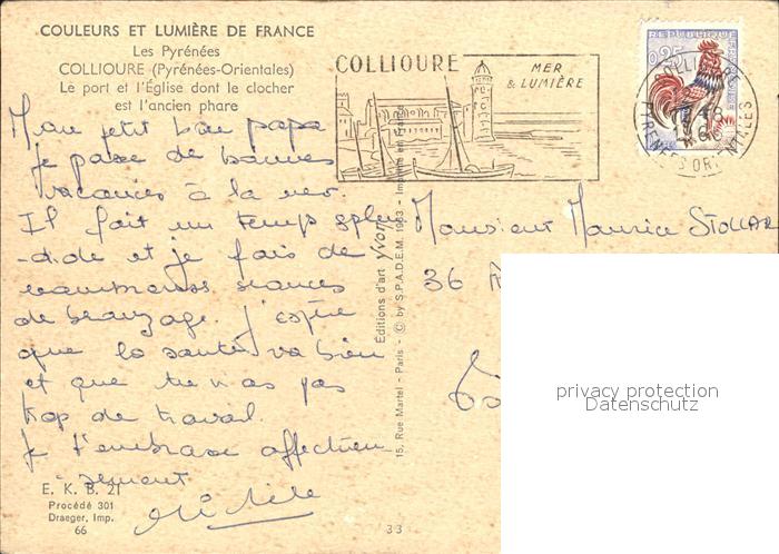 12459858 carte postale Collioure Port Eglise postalisch gelaufen Erhaltung siehe scans KatCode: 11170066166053