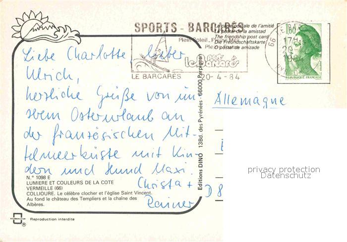 12832084 carte postale Collioure Strand Schlo postalisch gelaufen Erhaltung siehe scans [LiesaD40] KatCode: 11170066166053