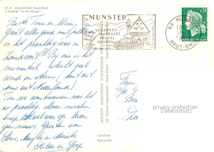 12687377 carte postale Colmar Haut Rhin Elsass Auberge Au Fer Rouge Vieilles Maisons Fachwerkhaeuser postalisch gelaufen Erhaltung siehe scans [FriedD77] KatCode: 11170068268066