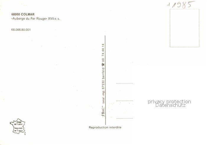 12912030 Colmar Haut Rhin Elsass Auberge du Fer Rouge postalisch nicht gelaufen Erhaltung siehe scans [NatalD47] KatCode: 11170068268066