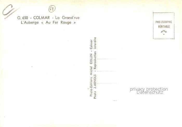 13526783 Colmar Haut Rhin Elsass Grand Rue Auberge Au Fer Rouge Fachwerkhaus postalisch nicht gelaufen Erhaltung siehe scans [FriedD77] KatCode: 11170068268066