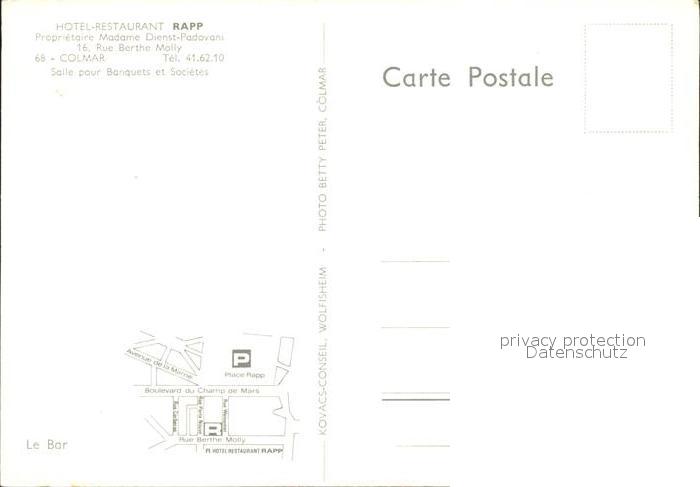 12496819 Colmar Haut Rhin Elsass Hotel Restaurant Rapp Rezeption postalisch nicht gelaufen Erhaltung siehe scans KatCode: 11170068268066